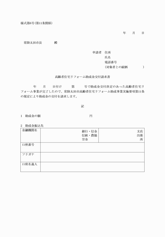 第10条 交付決定者は、整備完了後速やかに高齢者住宅リフォーム完了報告書(様式第5号)に次に掲げる書類を添えて、市長に提出するものとする。