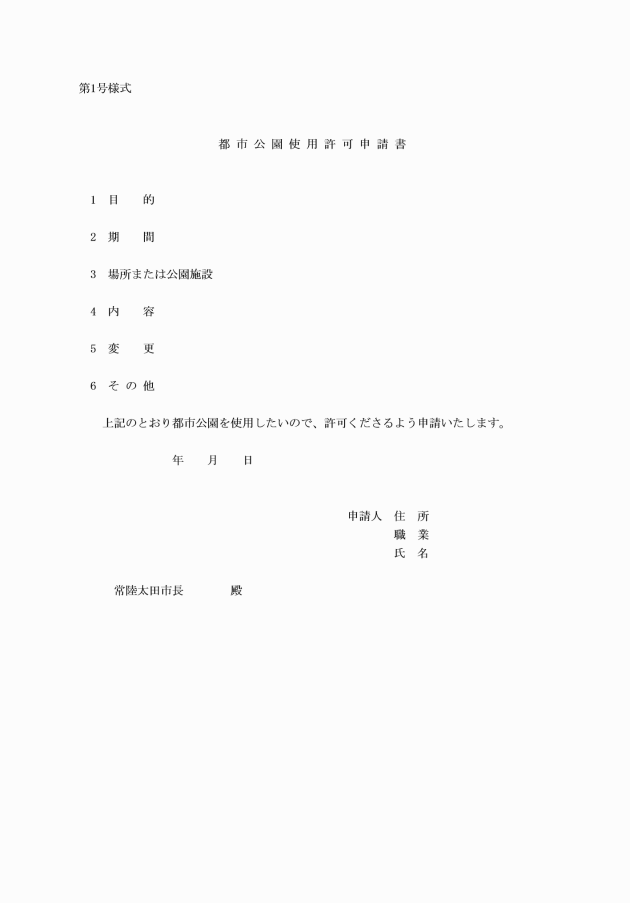 (公園施設の設置もしくは管理または都市公園の占用の許可申請書)