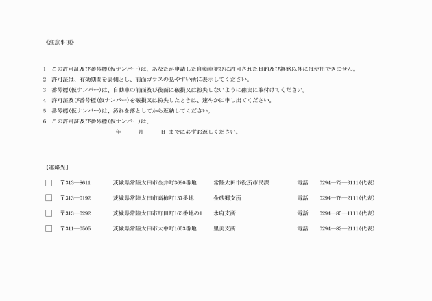 ○常陸太田市自動車臨時運行の許可に関する規則