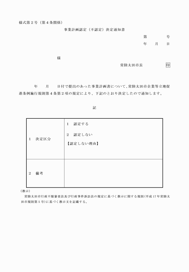 2 市長は、奨励措置適用承継申請書を受けたときは、速やかに承継の適否を審査し、奨励措置適用承継(不承継)決定通知書(様式第12号)により申請者に通知するものとする。