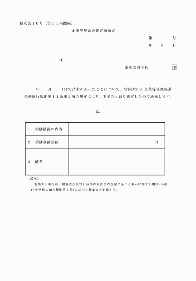 第11条 奨励金の交付決定を受けた適用企業等は、企業等奨励金請求書(様式第15号)をもって市長に請求するものとする。