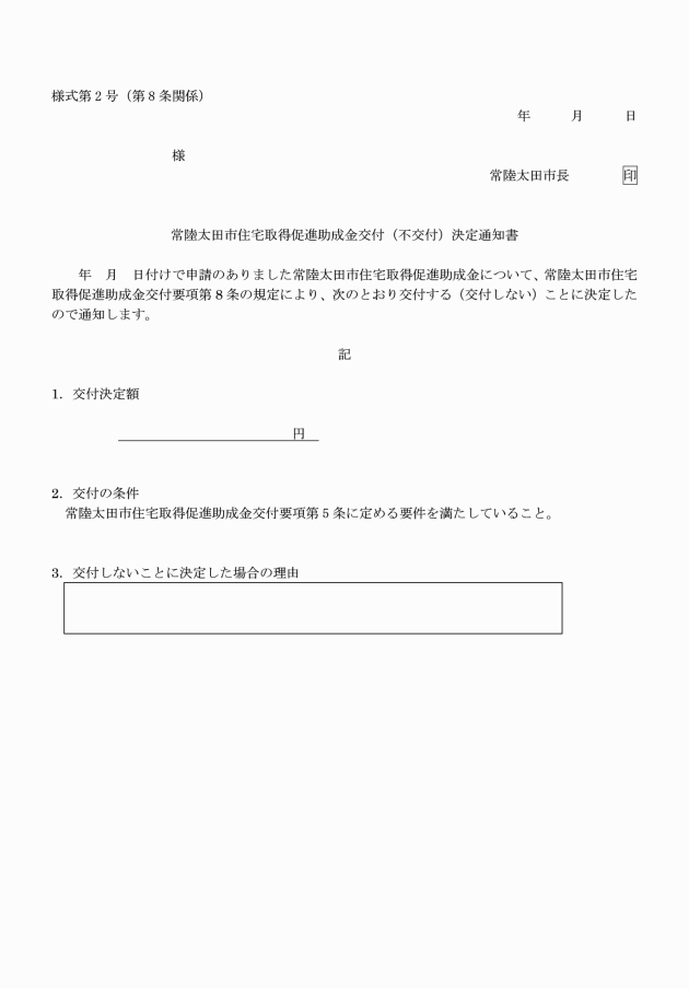 2 前項の規定にかかわらず、過去に本要項による助成又は常陸太田市子育て世帯等住宅増改築助成金交付要項(平成26年常陸太田市告示第53号)による助成を受けた者は、交付対象者としない。