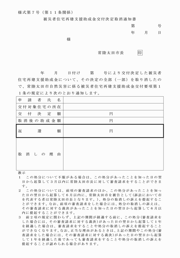 ○常陸太田市自然災害に係る被災者住宅再建支援助成金交付要項