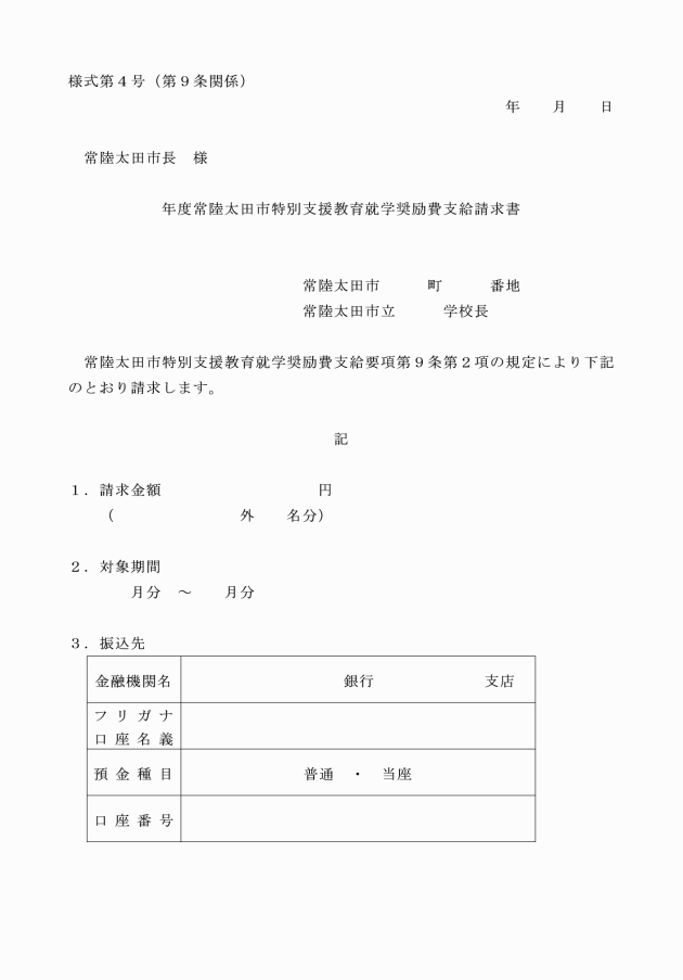 (1) 常陸太田市特別支援教育就学奨励費支給認定申請書(様式第1号)