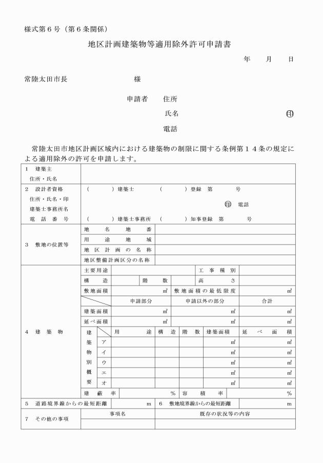 ○常陸太田市地区計画区域内における建築物の制限に関する条例施行規則